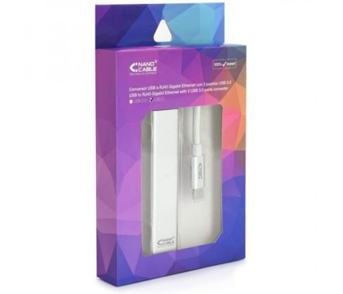 • 1 x Conversor USB-C a Ethernet Gigabit + 3XUSB 3.0, plata, 15 cm