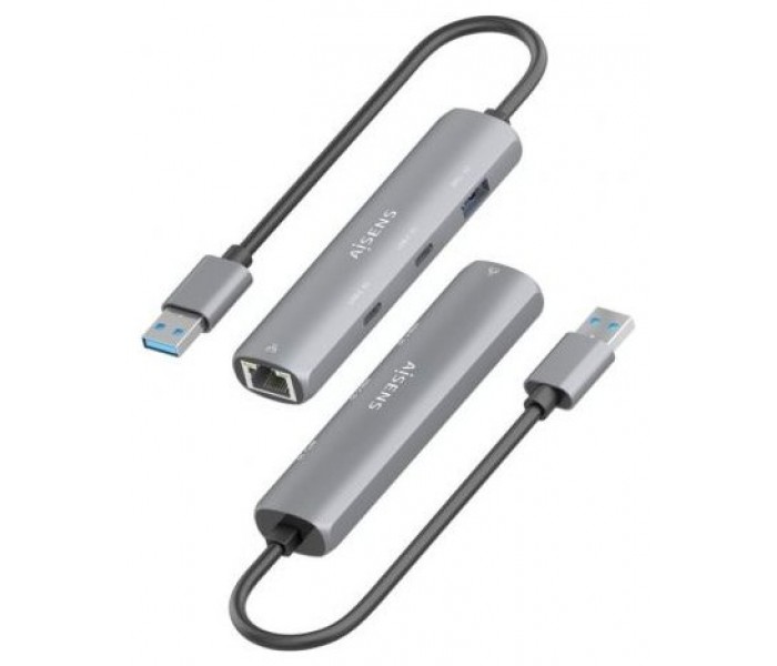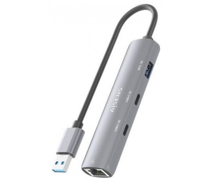 Hub USB Aisens ASUC-4P036-GR/ 2xUSB Tipo-C/ 1xUSB/ 1xRJ45/ Gris