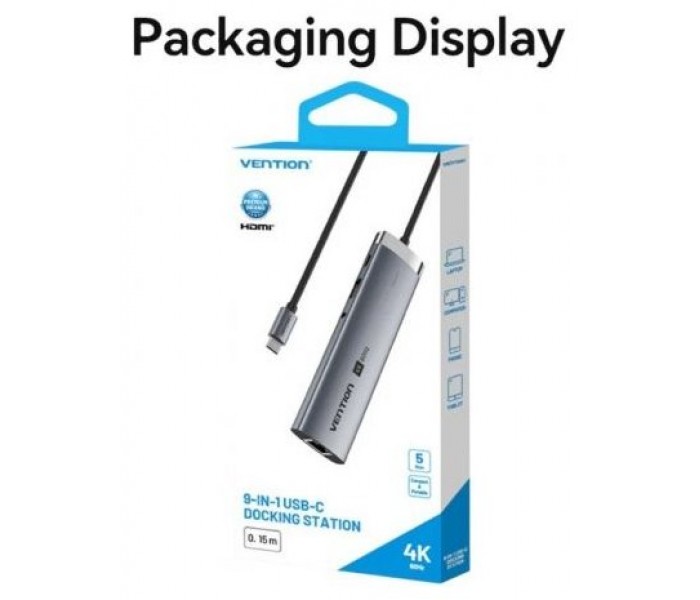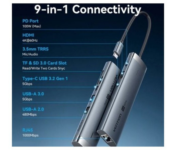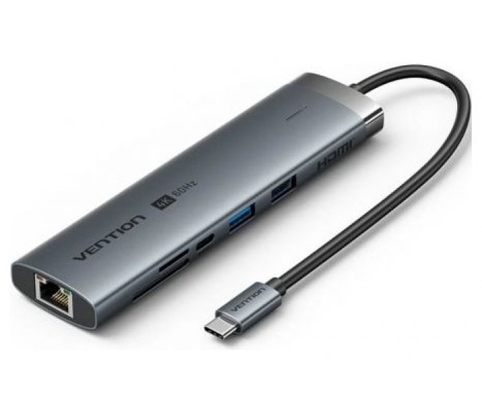 Hub USB Tipo-C 3.2 Vention TGVHB/ 2xUSB/ 1xUSB Tipo-C PD/ 1xUSB Tipo-C/ 1xRJ45/ 1xLector de Tarjetas/ 1xJack 3.5mm/ 1xHDMI/ Gris