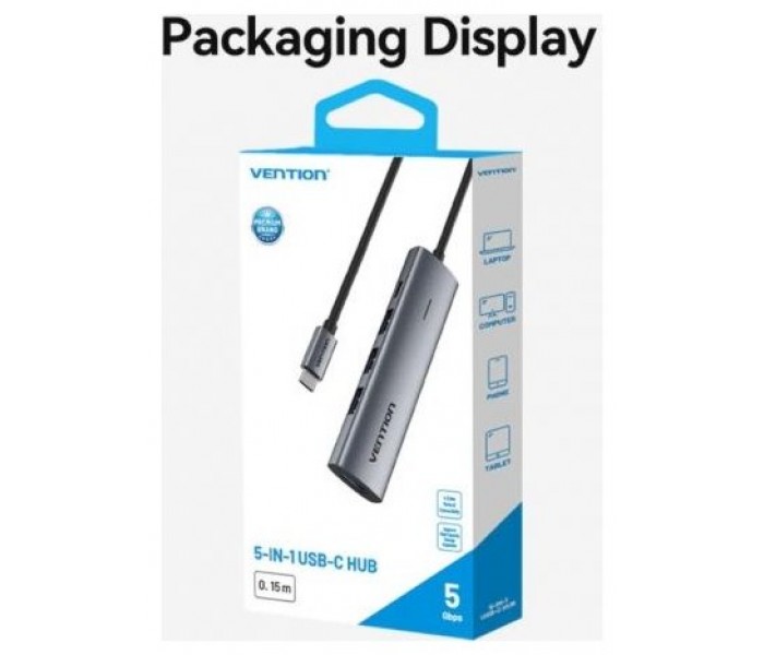 Hub USB Tipo-C 3.0 Vention TGZHB/ 3xUSB/ 1xUSB Tipo-C PD/ Gris