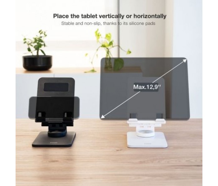 Halley y Luna, nuestros nuevos soportes para tablet de hasta 12,9” te ofrecen toda la comodidad y libertad de movimiento que necesites en cada momento. Podrás girarlos 360º para tener un amplio rango de visión. Gracias a sus almohadillas antideslizantes la estabilidad de la tablet está garantizada. Y como pueden plegarse, podrás guardarlos fácilmente y llevarlos contigo hasta el infinito y más allá.