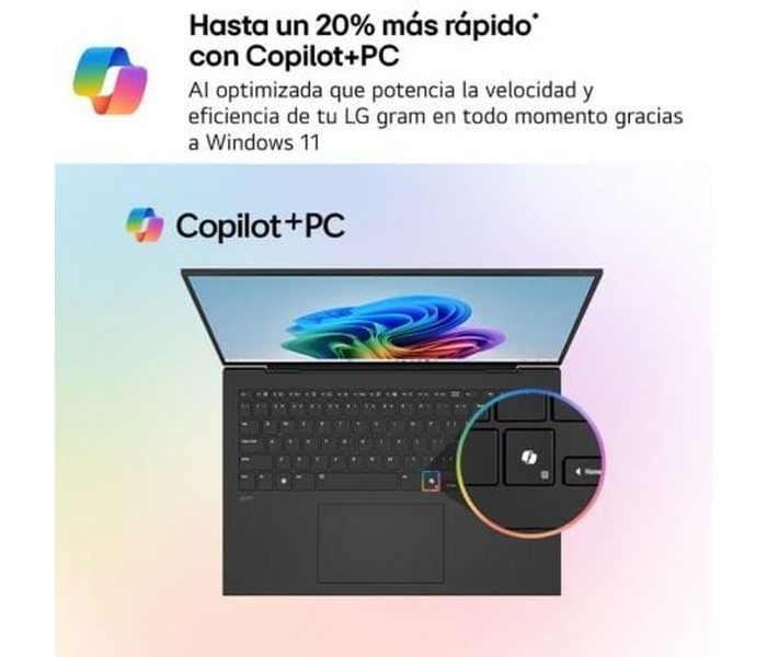- Hasta 50 TOPS de potencia al servicio de la IA. Equipado con el procesador AMD Ryzen™ AI 7, LG gram integra 3 AIs avanzadas: Chat On-Device sin conexión, Chat Cloud basado en GPT-4o y Copilot+ PC. Más rendimiento y eficiencia en un equipo portátil y ligero.