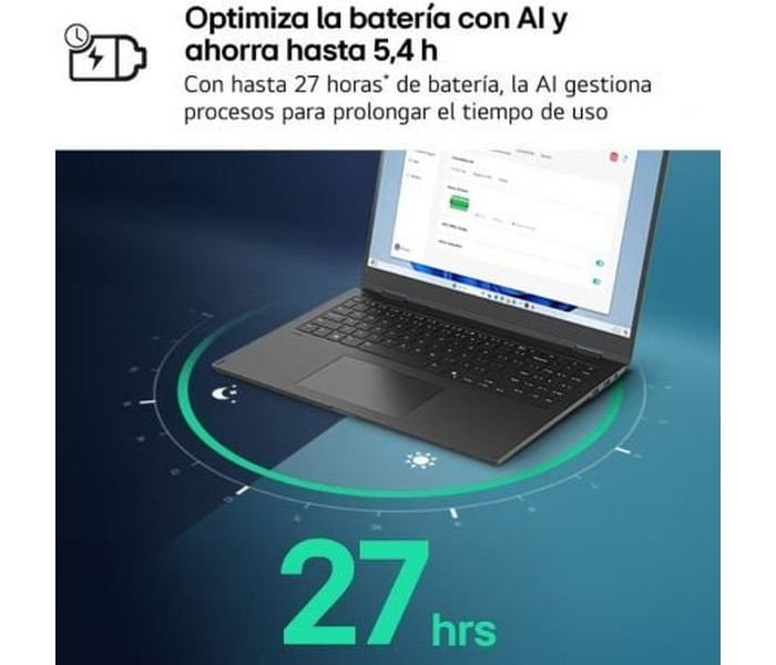 - Con solo 1.290 g de peso, hasta 27 horas de batería y un grosor de 15,4 mm, el LG gram te acompaña a donde quieras, combinando ligereza y autonomía para una libertad sin límites.