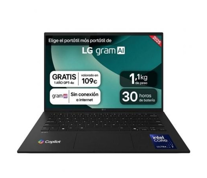 Portátil LG Gram 14ZD90T-G.AX88B Intel Core Ultra 7-255H/ 32GB/ 1TB SSD/ 14"/ Sin Sistema Operativo