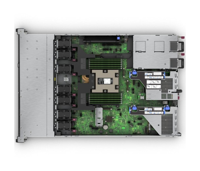 Servidor HPE ProLiant DL325 Gen11 con un procesador AMD EPYC™ 9115, 64 GB (2x32 GB) de memoria doble rango, un HPE MR408i-o Gen11 x8 carriles con 4GB de caché OCP SPDM Storage Controller, soporte para ocho discos SFF, siete kits de ventiladores estándar HPE ProLiant DL3XX Gen11 1U, dos SSDs HPE de 480GB SATA 6G con mucha lectura SFF BC Multi Vendor, dos kits de alimentación de enchufe caliente de titanio HPE 1000W Flex Ranura, un TPM (Módulo de Plataforma Confiable), un kit de bloqueo de bisel HPE, un kit de cable de intrusión HPE ProLiant DL3XX Gen11, un kit de bisel común HPE ProLiant Gen11 1U y una garantía de 3/3/3