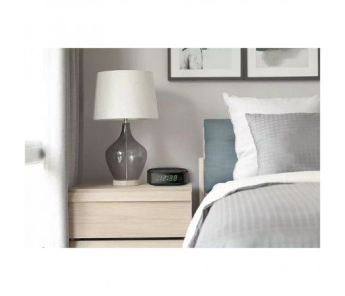 Disfruta de la sencillez con esta radio reloj digital FM. La gran cantidad de presintonías hacen que la navegación por las emisoras sea muy sencilla y puedes ajustar la alarma para que te despierte con un volumen de radio que sube suavemente. ¿Quieres dormir? Solo tienes pulsar el botón de repetición.