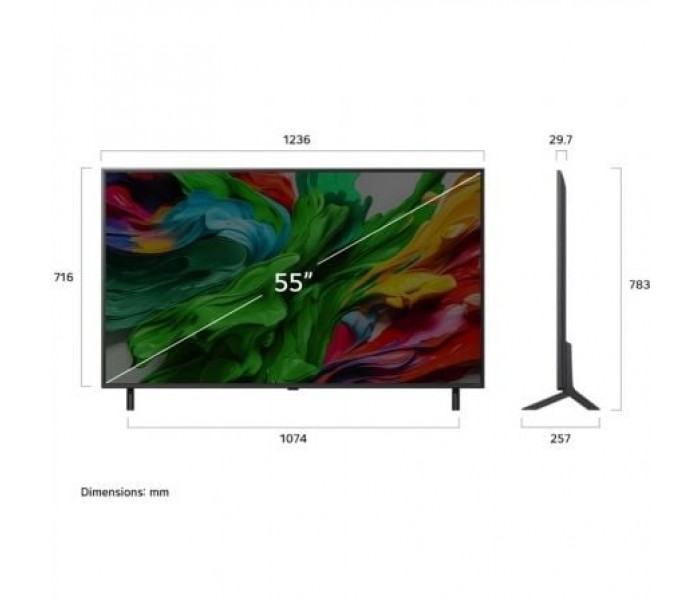 - Dimensiones TV Sin peana (AnxAlxPr mm): 1236 x 716 x 29,7