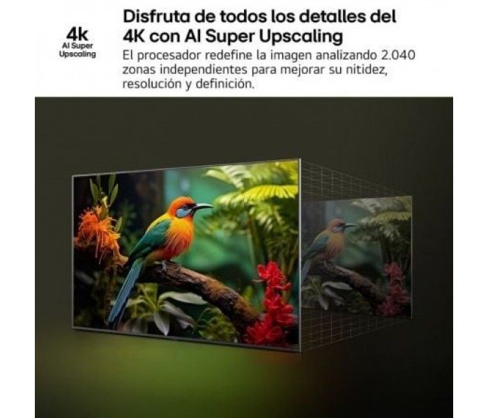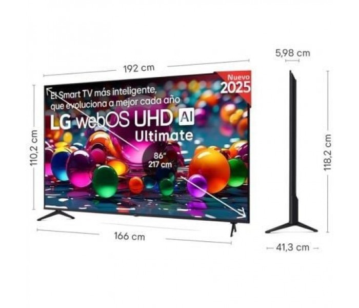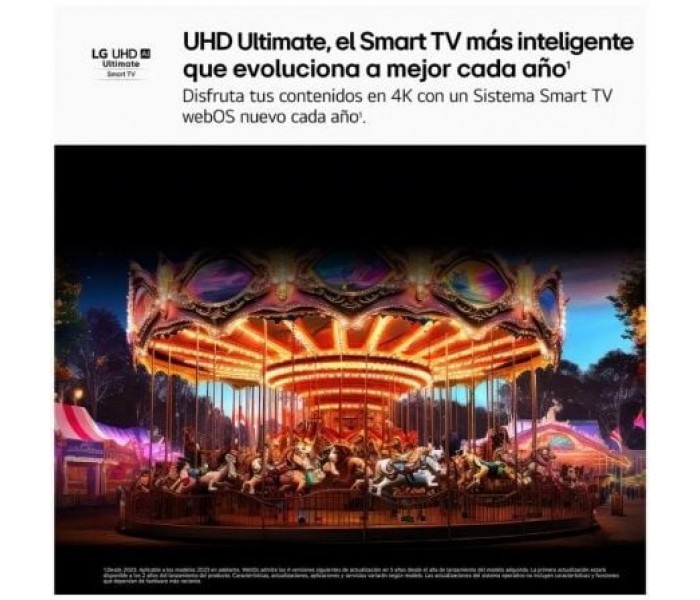 - Smart TV webOS 25 que evoluciona a mejor cada año renovándose en tu TV e incorporando las nuevas funciones de la IA y que está preparado para próximos apagones TDT. Más inteligente para una personalización y un control del hogar avanzados: reconocimiento de voz, recomendación de contenidos, configuración de imagen y sonido, asistente virtual y mando Magic Remote con puntero inalámbrico (no incluido, se vende por separado en esta web.)