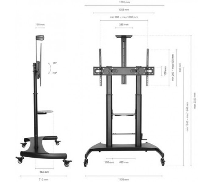 Soporte de Suelo Inclinable con Ruedas y Manivela Aisens FT100TE-123 para TV 60-100"/ hasta 100kg