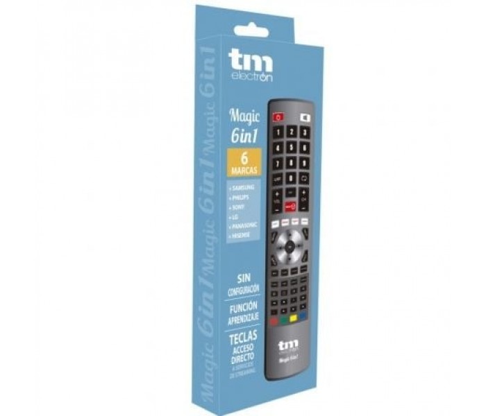 UN SOLO MANDO A DISTANCIA PARA CONTROLAR TODOS LOS TV DE LA CASA. Magic 6 en 1 te permite tener el remplazo ideal de tus mandos a distancia originales en un solo dispositivo. Controla hasta 6 marcas de los modelos de TV más vendidos en el mercado Samsung / LG / Sony / Panasonic / Hisense, sin necesidad de configurar, basta con insertar las pilas y el mando estará listo para usarse.¿EL MANDO ADECUADO PARA TU TV? Buscamos la mejor solución para controlar el televisor de tu casa. Si no funciona como esperas siempre puedes personalizar totalmente el mando a distancia según tus necesidades con la Función de Aprendizaje.