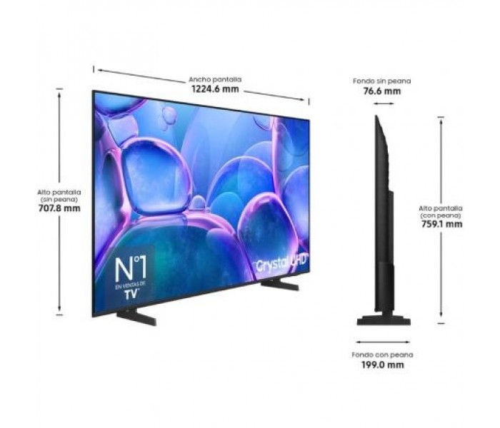 - Pantalla Crystal UHD 4K de 55 pulgadas con resolución 3840 x 2160