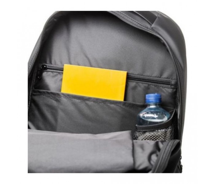 - Portabotellas interno: un espacio dedicado mantiene tu botella en posición vertical y alejada de dispositivos electrónicos y papeles.