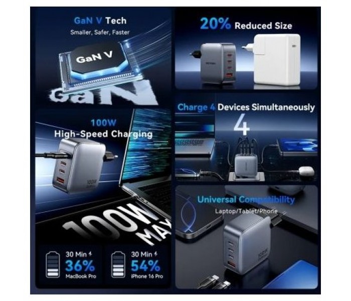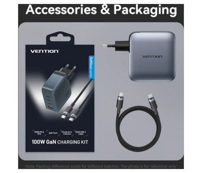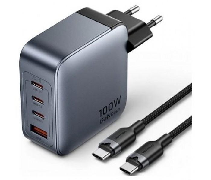 Cargador de Pared GaN Vention TZ-FETH0-EU/ 3xUSB Tipo-C/ 1xUSB/ 100W