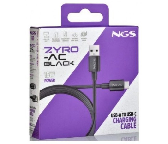 Cable de carga rápida USB-A a USB-C. Transmisión de datos: 480 bps USB 2.0. 1 metro. 15W